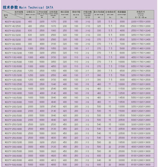 性能特点: 全钢焊接结构,热处理消除内应力,刚性足,稳定性好。 钮轴同步,下死点机械档块定位,平稳性好。 集成液压系统,滑块上传动,速度调节范围大。 后档料板与滑块行程电动调整,手动微调,熟字显示。 抗偏载能力强。 可进行多机联动。