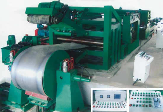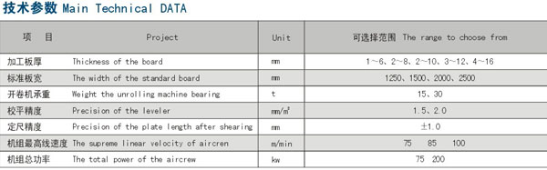 性能特性: 该校平线适用中等厚度范围的热轧碳钢、低合金钢、工业不锈钢等卷板的整平、定长剪切。 通常由液压上料小车、开卷机、液压引料机、夹送粗矫机、过渡工作台、纠偏机构、校平机组、剪板机、 码垛平台、液压系统、电气控制系统等组成。同时可根据用户需要配置切边机、纵剪机、边丝收卷机等机构, 以获得四切边板或沿长度方向对钢板进行分条剪切。定长控制多选用英国欧陆公司具有自动化程度高、校平质 量好、剪切精度高、生产效率高、性能稳定可靠,操作维护方便等特点。